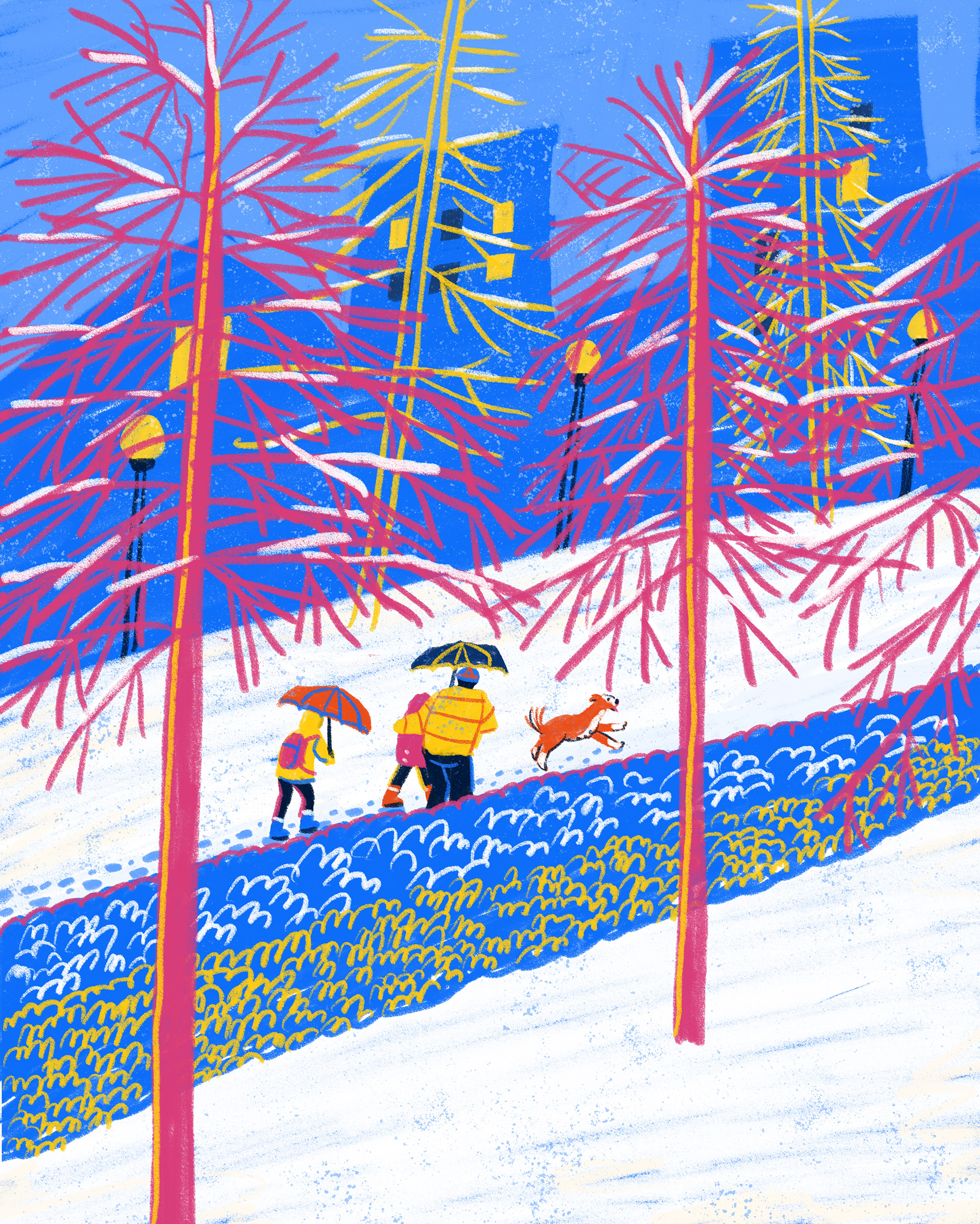 This illustration is based on the photo I took from the window yesterday morning.