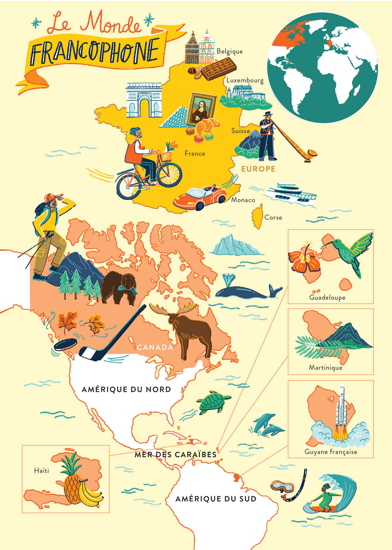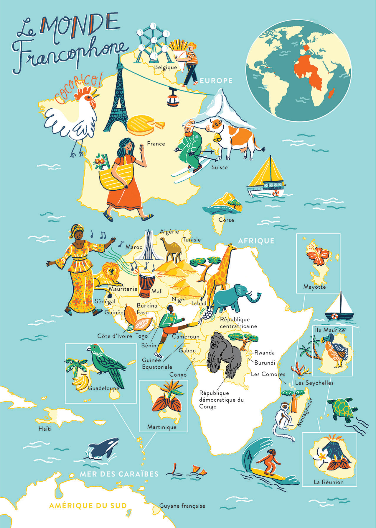 I got an opportunity to illustrate maps of Francophone countries for Tricolore French Lesson Books.