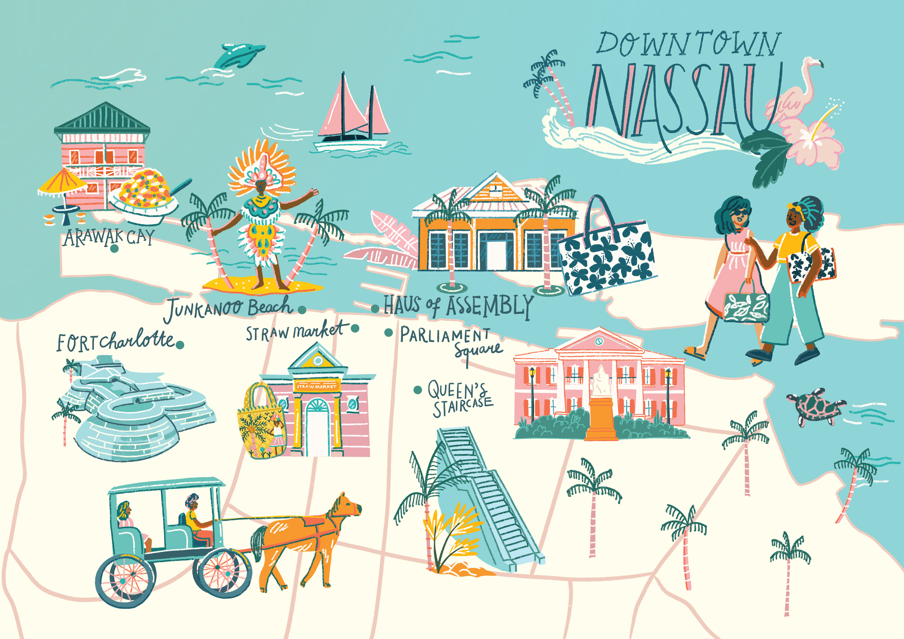 Illustrated map of Downtown Nassau, The Bahamas for Haus of Assembly.