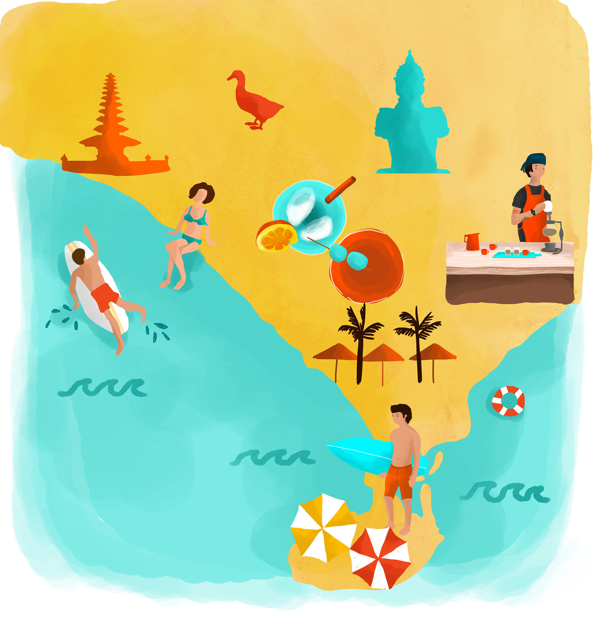 Illustration for cover & main article of Hellobali July 2013 issue.